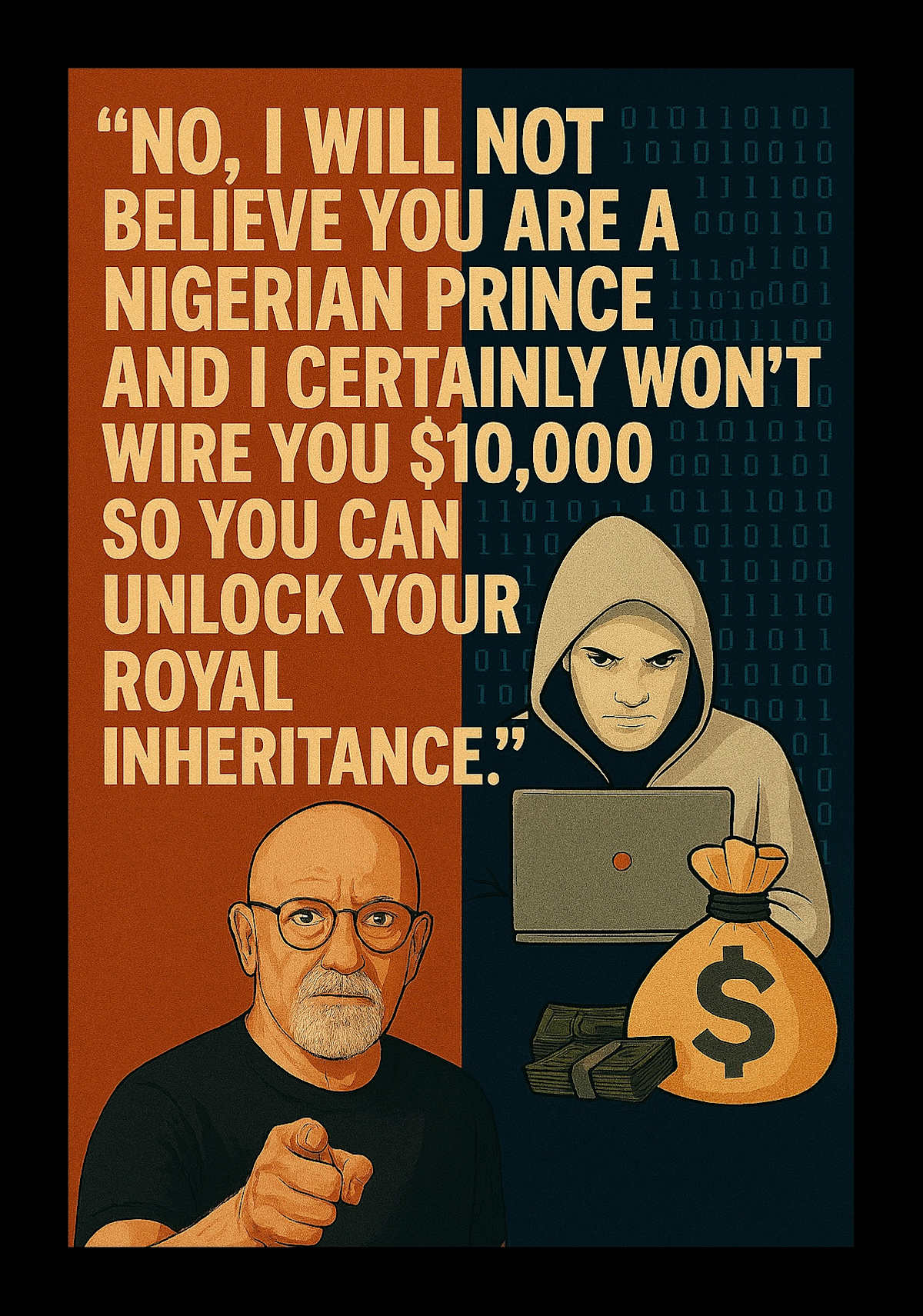 The Nigerian Prince scam has roots in a 19th-century con known as the “Spanish Prisoner” scam got a new life in 1990s with the arrival of the Internet and email. Unfortunately, I think the scam will be with us forever!