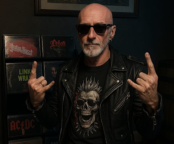 The photo of me doing the Ronnie James Dio “devil-horns” pose is a deepfake. It took me ten minutes to make with no talent—all I did was upload a photo, tell CoPilot what to do, and voila: a sixty-year-old-ish rockstar is born!